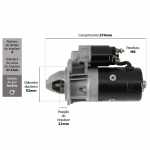 Compatibilidade: esse motor de partida pode ser colocado no lugar dos motores de partida abaixo. Isso não significa que os componentes (induzido, bobina de campo, porta-escovas, mancal, impulsor...) sejam compatíveis, mas sim que um motor de partida completo pode ser colocado no lugar do outro.