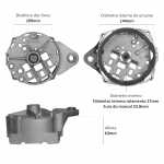 O mancal traseiro faz o fechamento do alternador. Cada mancal é feito com uma estrutura que assegura a absorção de esforços radiais e axiais e permite os regimes de rotação que o motor exige.