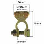 Este terminal pode ser aplicado tanto nos bornes negativos quanto nos bornes positivos da bateria. Para aplicar nos negativos, basta um pouco a mais de aperto para o ajuste do terminal aos bornes da bateria ficar adequadamente justo.