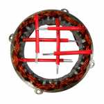 No estator é produzida a corrente elétrica do alternador, induzida pelo campo magnético que age nos fios das bobinas do estator.