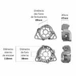 O mancal traseiro faz o fechamento do alternador. Cada mancal é feito com uma estrutura que assegura a absorção de esforços radiais e axiais e permite os regimes de rotação que o motor exige.