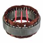 No estator é produzida a corrente elétrica do alternador, induzida pelo campo magnético que age nos fios das bobinas do estator.