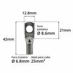| Tamanho do terminal | Ponteira cabo 25mm² |