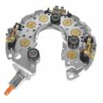 Também conhecido por placa de diodos, o retificador tem a função de transformar a corrente alternada produzida pelo alternador em corrente contínua, necessária para carregar a bateria.