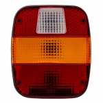 Lanterna traseira tricolor com lente de vigia e pisca amarelo de lado esquerdo para caminhões Ford Cargo e Volkswagen Constellation, Delivery, Worker.