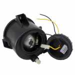 Acompanha suportes para a posição do farol e uma capa para a proteção das saídas elétricas.