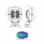 Farol de trabalho quadrado de LED 12V e 24V que proporciona até 80% de redução de consumo comparado com o consumo de lâmpadas convencionais.