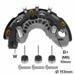 Nota: o parafuso B+ deste retificador tem 10mm de comprimento, medidos da ponta do parafuso até a superfície do retificador. O retificador suporta até 150A e tem 3 diodos de 50A.