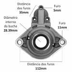 | Conteúdo da embalagem | 1 (um) mancal dianteiro novo 1 (uma) bucha já acoplada ao mancal nova 1 (um) retentor de borracha já acoplado ao mancal novo |