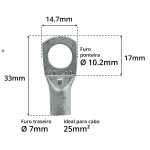Este terminal é apropriado para cabos de bitola (seção nominal) de 25mm².